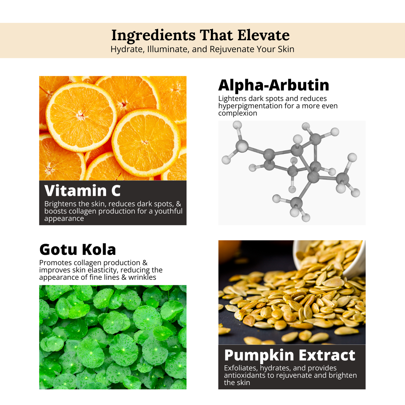 The result? Visibly brighter, deeply hydrated, protected skin with a healthy, dewy glow. Perfect for all skin types, this gentle yet effective formula transforms your complexion one day at a time.