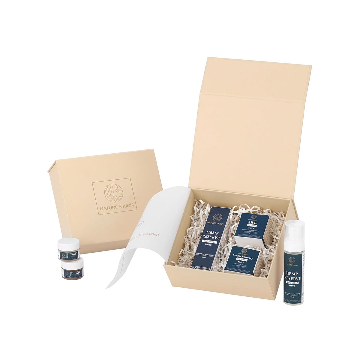 Give your skin complete daily care with the Nature’s Kinn 3-Piece Skincare Gift Set. This set includes All-In Eye Cream to hydrate, firm, and brighten tired eyes, Hemp Reserve Body Lotion for deep hydration and soft, nourished skin, and Intense Recovery Lip Balm to heal and moisturize dry, chapped lips. Enriched with shea butter, vitamin E, hemp seed oil, and antioxidants, each product works together to soothe, protect, and restore your skin naturally. Suitable for all skin types, this gift set is perfect for everyday use or as a thoughtful skincare present.